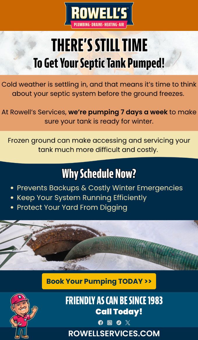 "Friendly As Can Be Since 1983!" When you need help with your plumbing, drains, heating, cooling or electrical in New Hampshire, you can always rely on Rowell's Services! Call us now or book online!